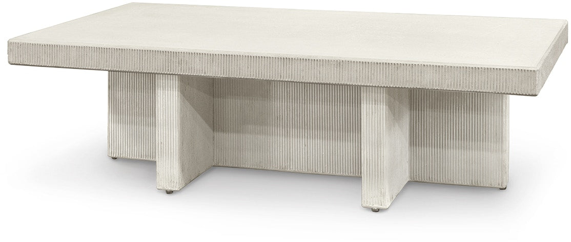 Composite stone in a white cement finish. Each piece is unique and will vary in color and texture, no two pieces will be alike. The porous and textured top is lightly coated to assist with protection against marks and minor spills. To maintain your table's natural beauty clean spills as quickly as possible and avoid cutting or placing hot pans directly on the surface. Suitable for outdoor use. Table ships KD. Simple assembly is required. Coordinates with the Delano outdoor white collection.