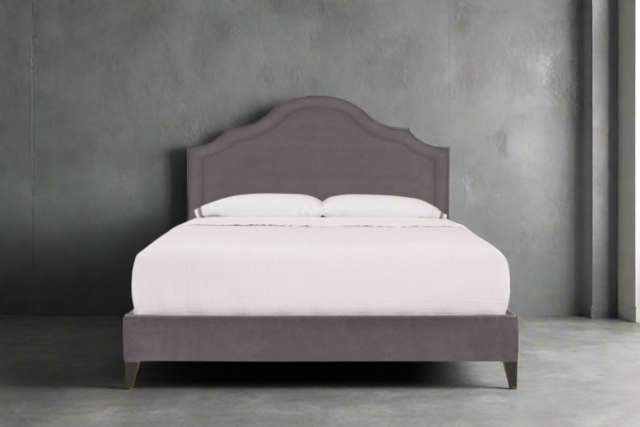 Introducing the Hestia King Bed, a luxurious addition categorized under Beds. This queen-sized bed is designed with dimensions of 82 × 86.5 × 67.5 in, providing a generous and comfortable sleeping space. The Hestia bed is not only distinguished by its dimensions but also by its customizable options, being available in a variety of fabrics and leather choices to suit your personal style.
