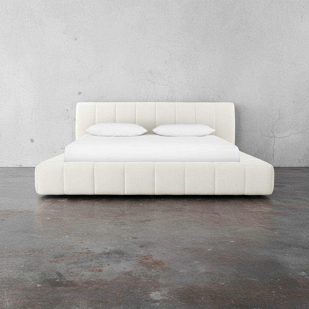 Wide, vertical channeling and low styling speak to the modish Italian influence of this softly textured bed upholstered in cream high-performance fabric. Performance fabrics are specially created to withstand spills, stains, high traffic and wear, ensuring long-term comfort and unmatched durability.