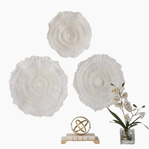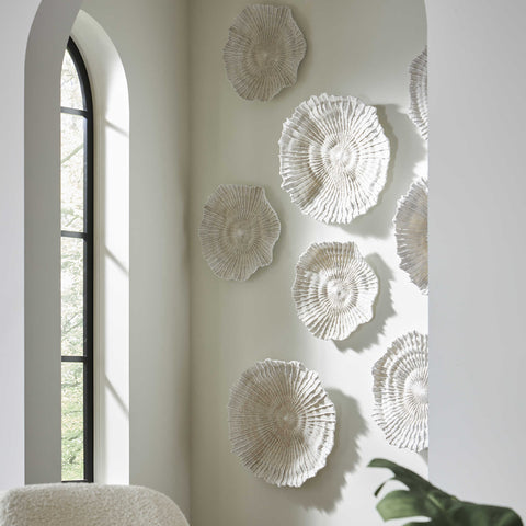 Handcrafted to recreate the look of live sea coral, these wall discs feature a heavily textured ivory and tan finish.