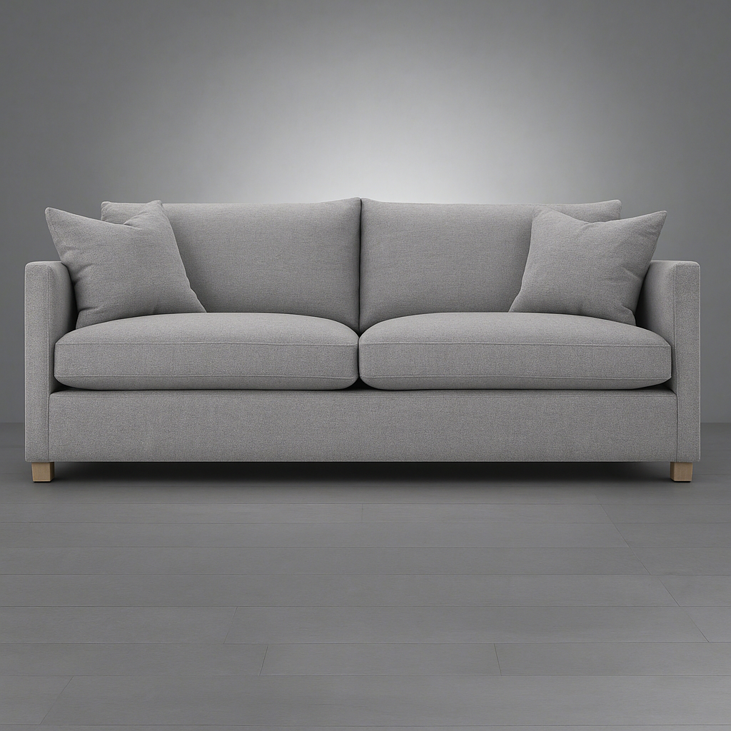 Expertly crafted in Virginia, the SERENA TWO CUSHION 92" SOFA boasts elegant, clean lines and a solid wood frame for lasting durability. Its high-quality construction and customizable fabric and finish make it a perfect addition to any living space. Elevate your home decor with this sophisticated, American-made sofa.