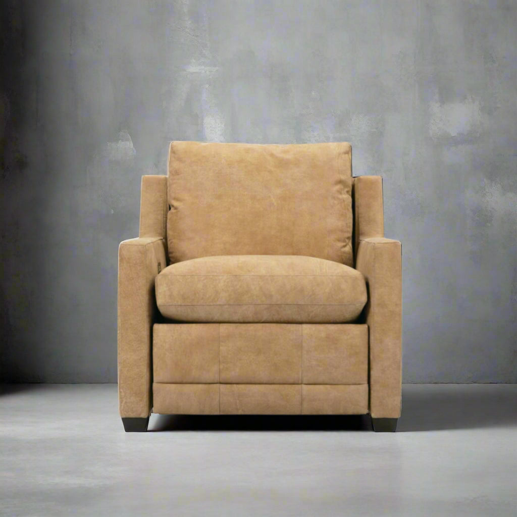 Indulge in the exquisite comfort of our Sylvie Leather Recliner, meticulously crafted in America using premium top grain leather. Each piece showcases superior artisanship with impeccable attention to detail, ensuring exceptional durability and timeless elegance. Experience the perfect balance of sophisticated design and sumptuous relaxation that only genuine quality craftsmanship can deliver.